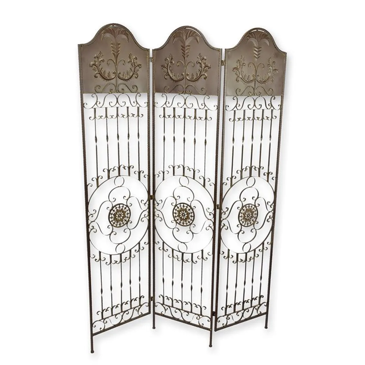 A 3 PANEL IRON PARAVENT - BROWN