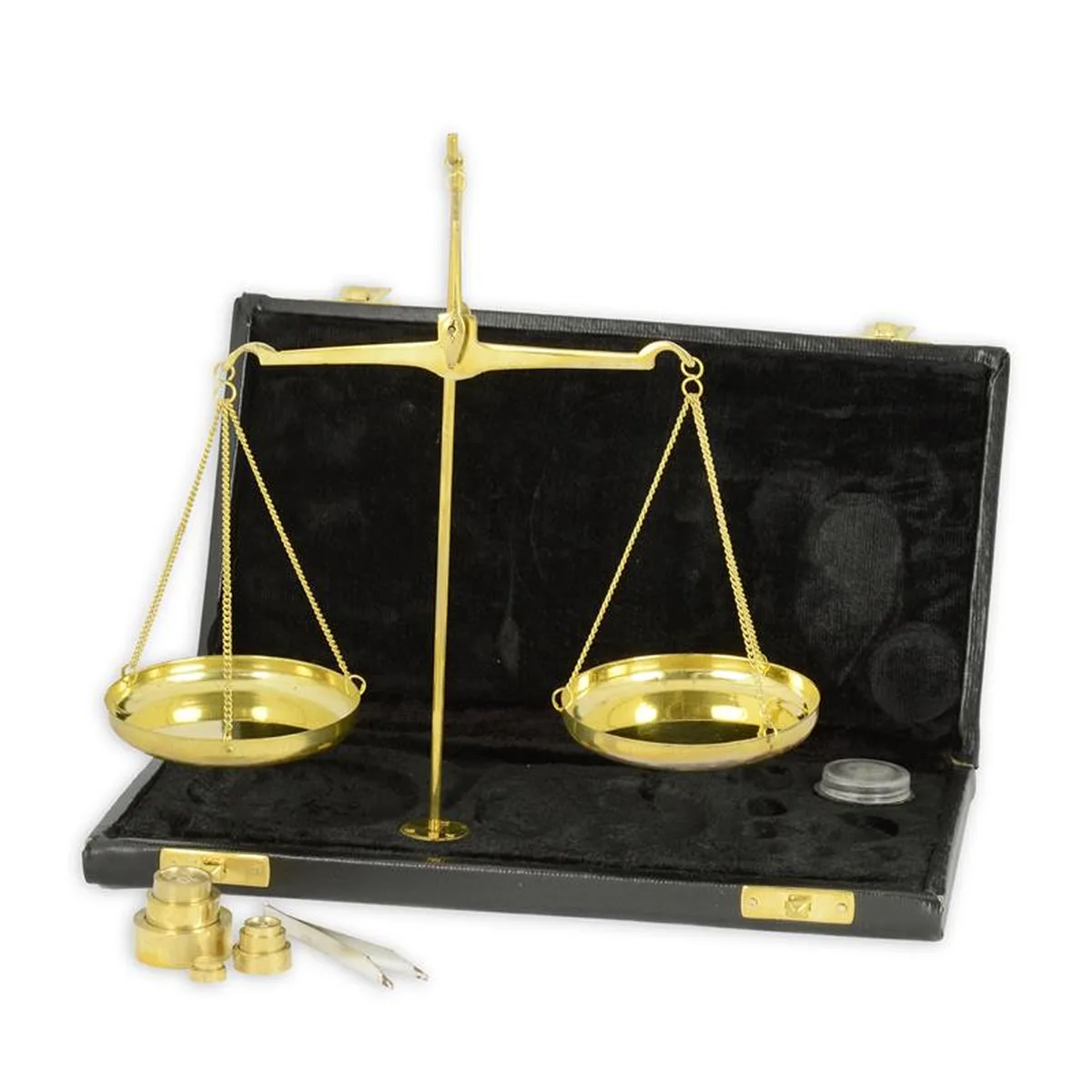 A BRASS APOTHECARY SCALE IN BOX