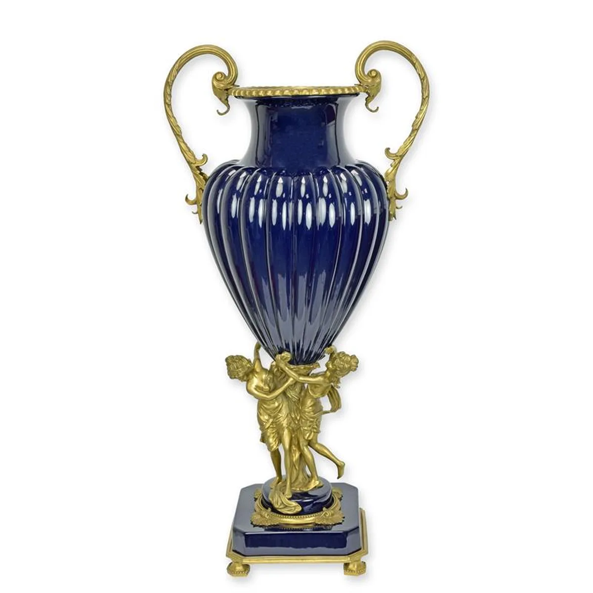 A BRONZE MOUNTED BLUE-GROUND PORCELAIN URN