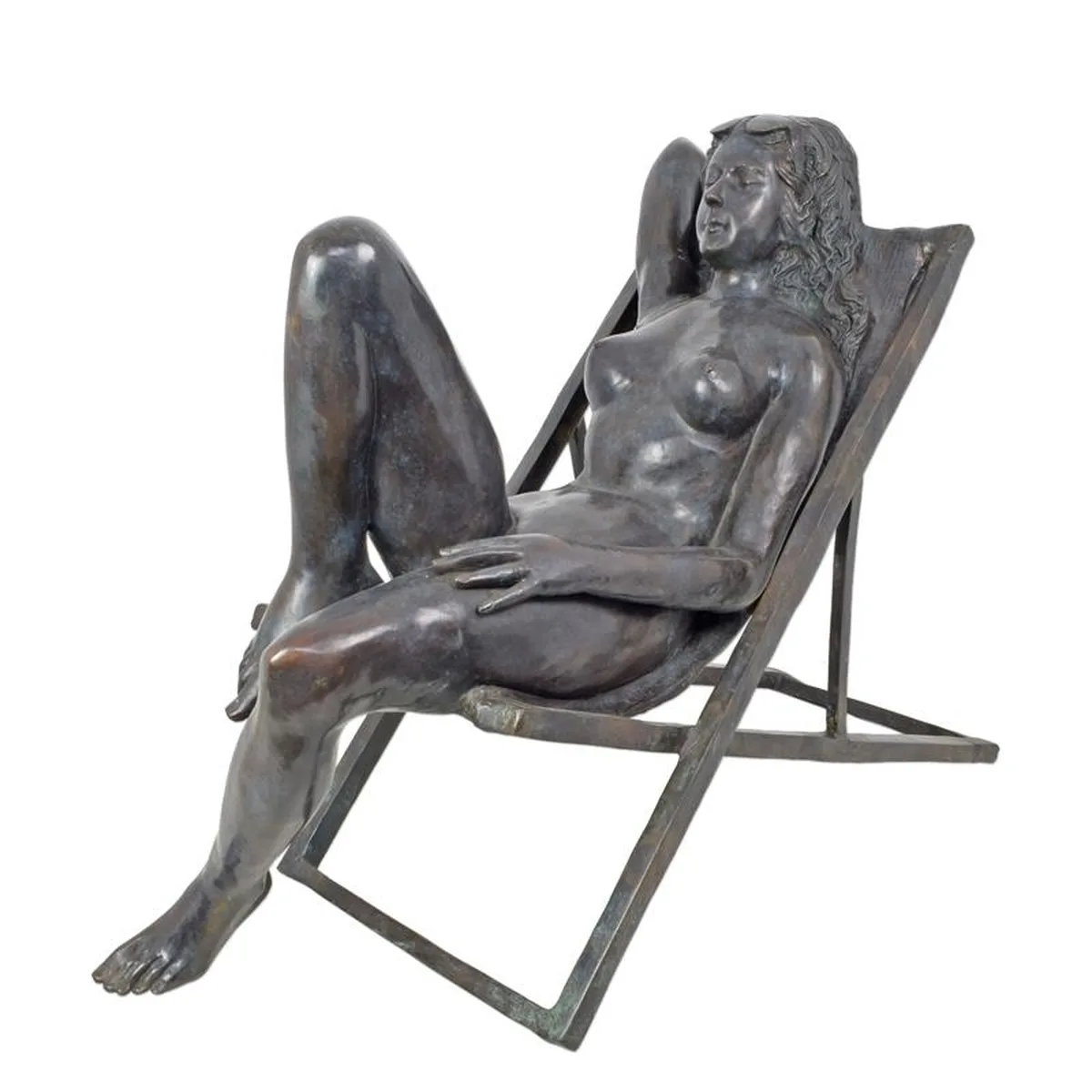 AN EROTIC BRONZE SCULPTURE OF A FEMALE NUDE