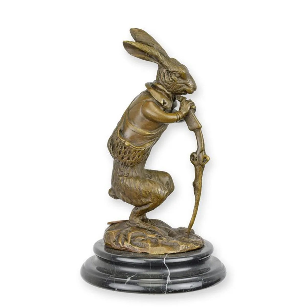 A BRONZE SCULPTURE OF A HARE DRESSED AS A HUNTER