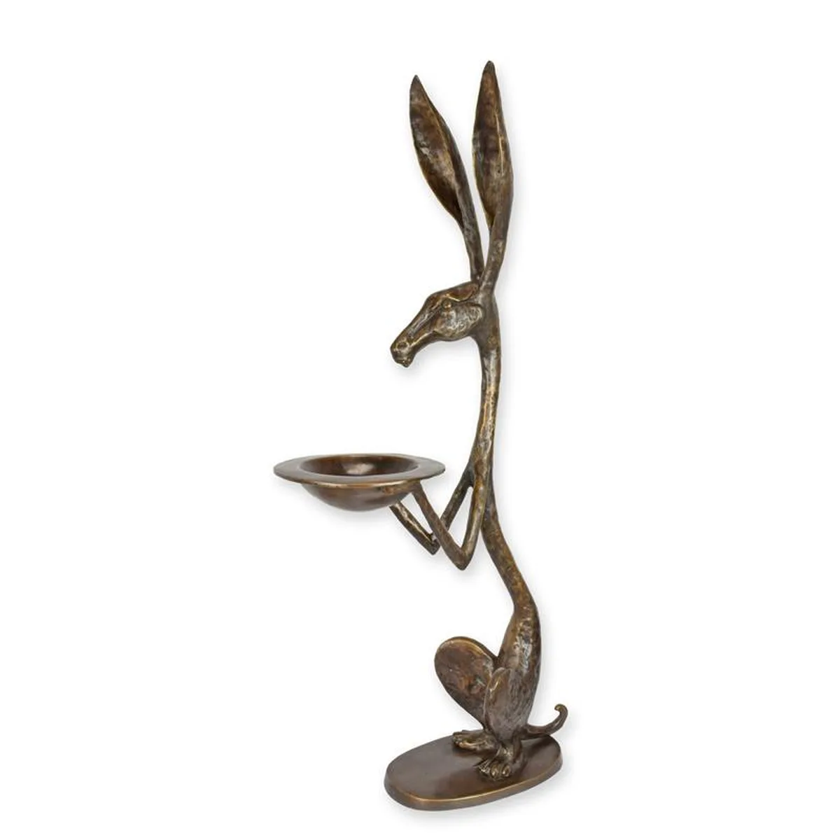 A BRONZE SCULPTURE OF A HARE HOLDING A TRAY