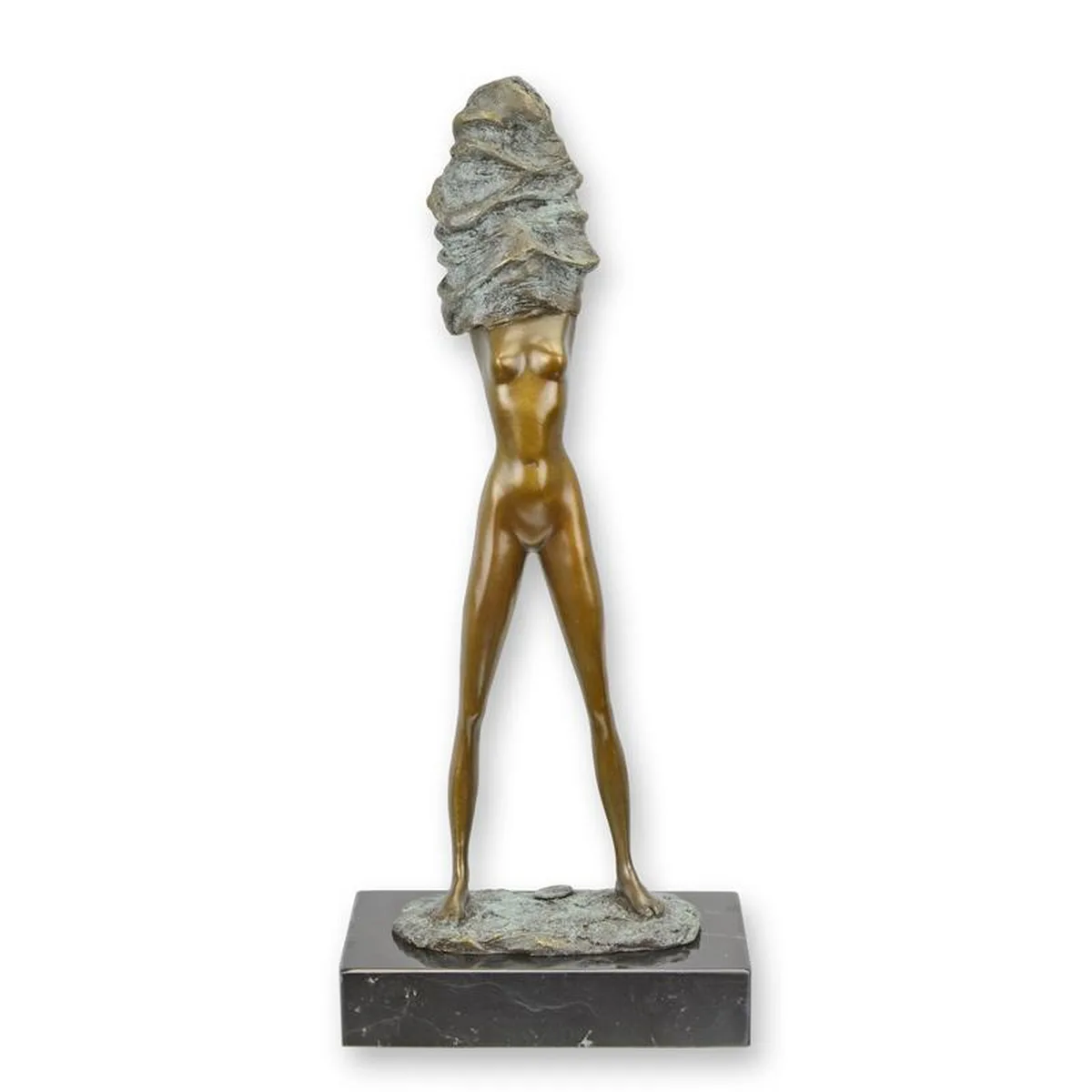 A BRONZE SCULPTURE OF A LADY UNDRESSING