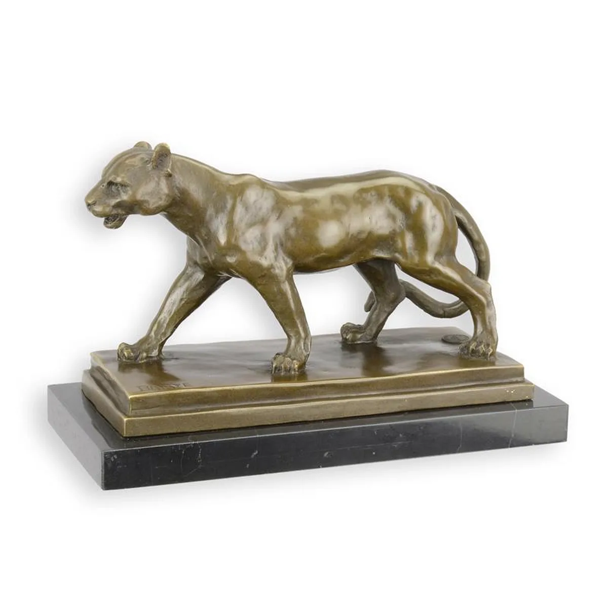 A BRONZE SCULPTURE OF A LIONESS