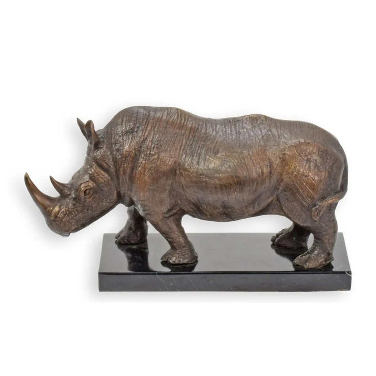 A BRONZE SCULPTURE OF A RHINOCEROS