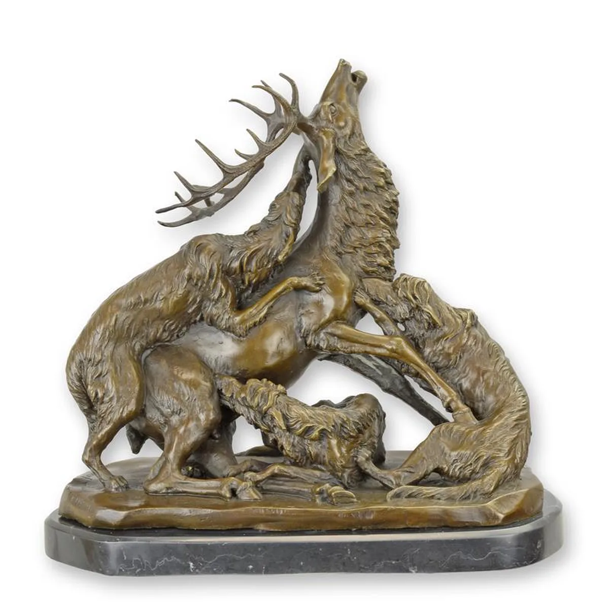 A BRONZE SCULPTURE OF THE DEER HUNT