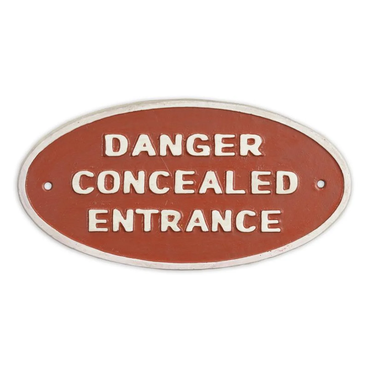 A CAST IRON DANGER CONCEALED ENTRANCE" PLAQUE"