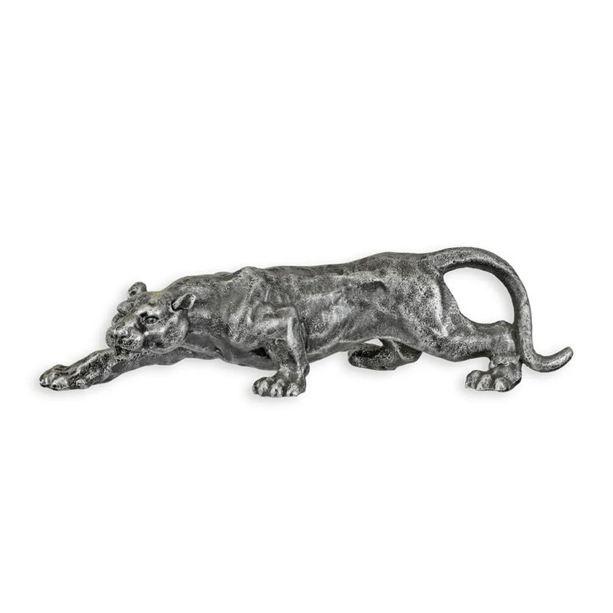 A CAST IRON FIGURINE OF A PANTHER - OLD SILVER