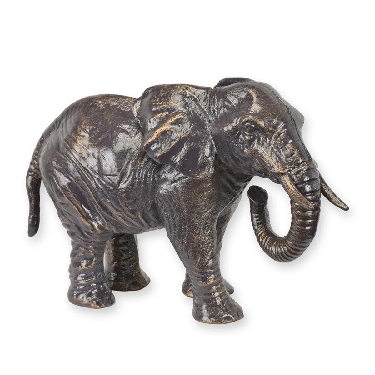 A CAST IRON FIGURINE OF AN ELEPHANT