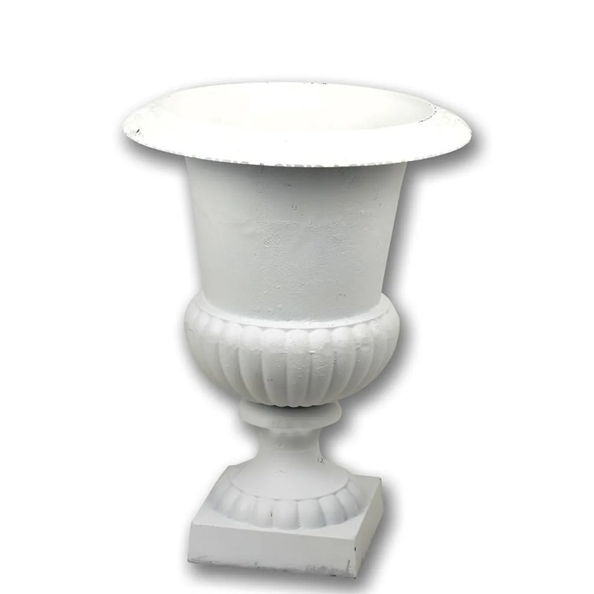 A CAST IRON GARDEN URN - WHITE