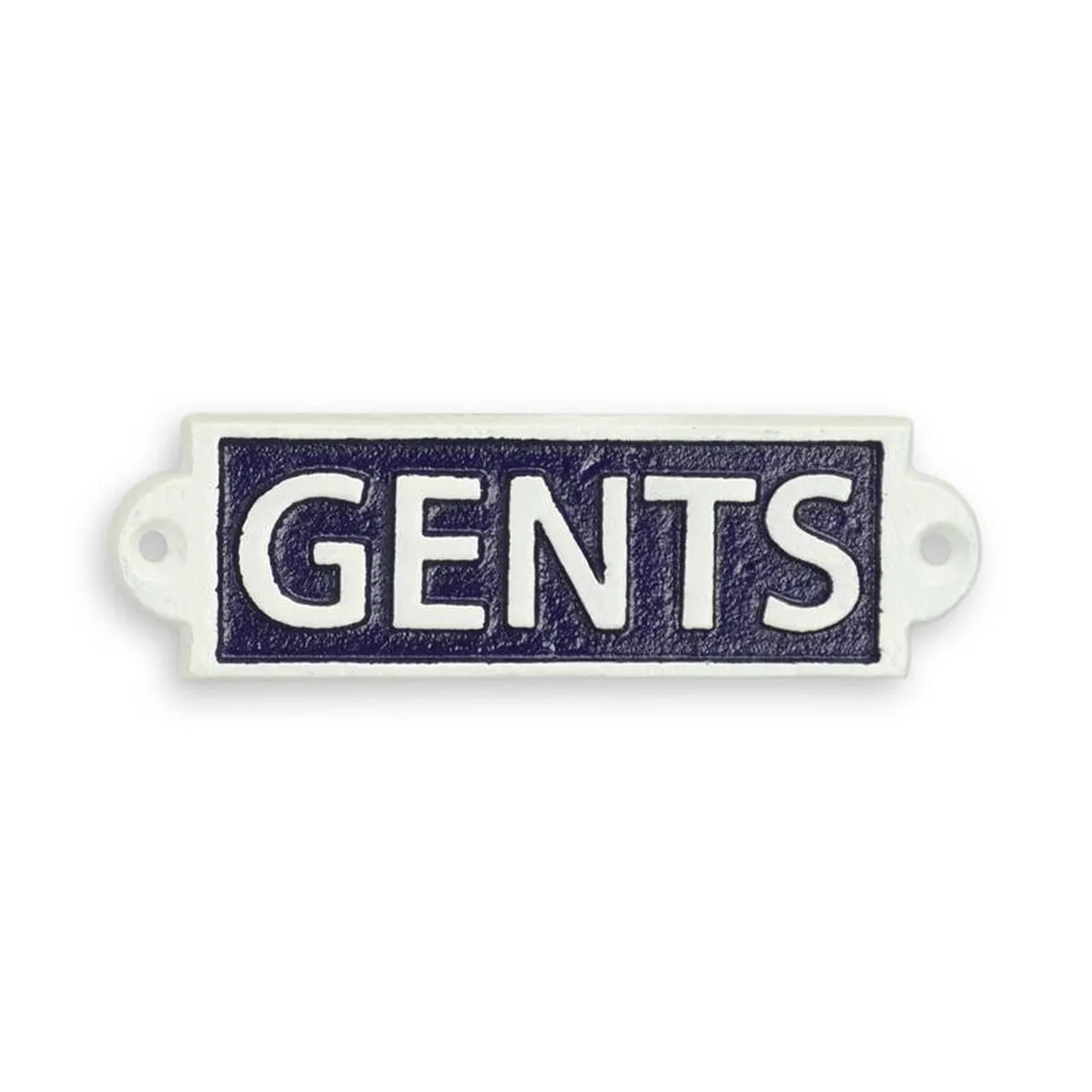 A CAST IRON GENTS SIGN WHITE ON DARK BLUE
