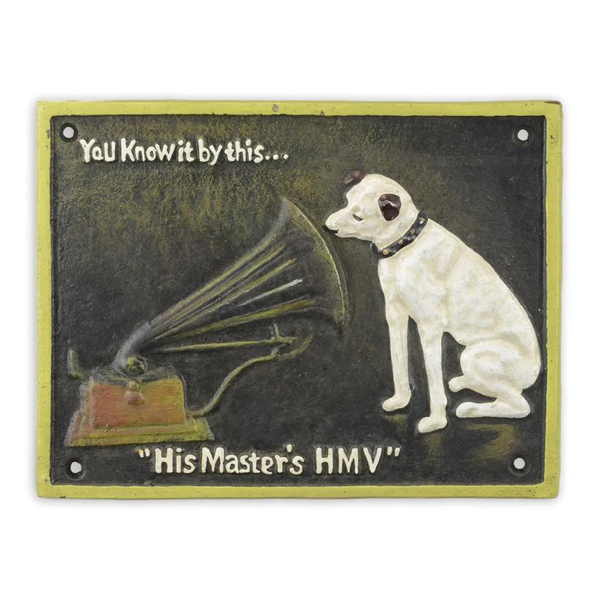 A CAST IRON HIS MASTER'S HMV" PLAQUE"