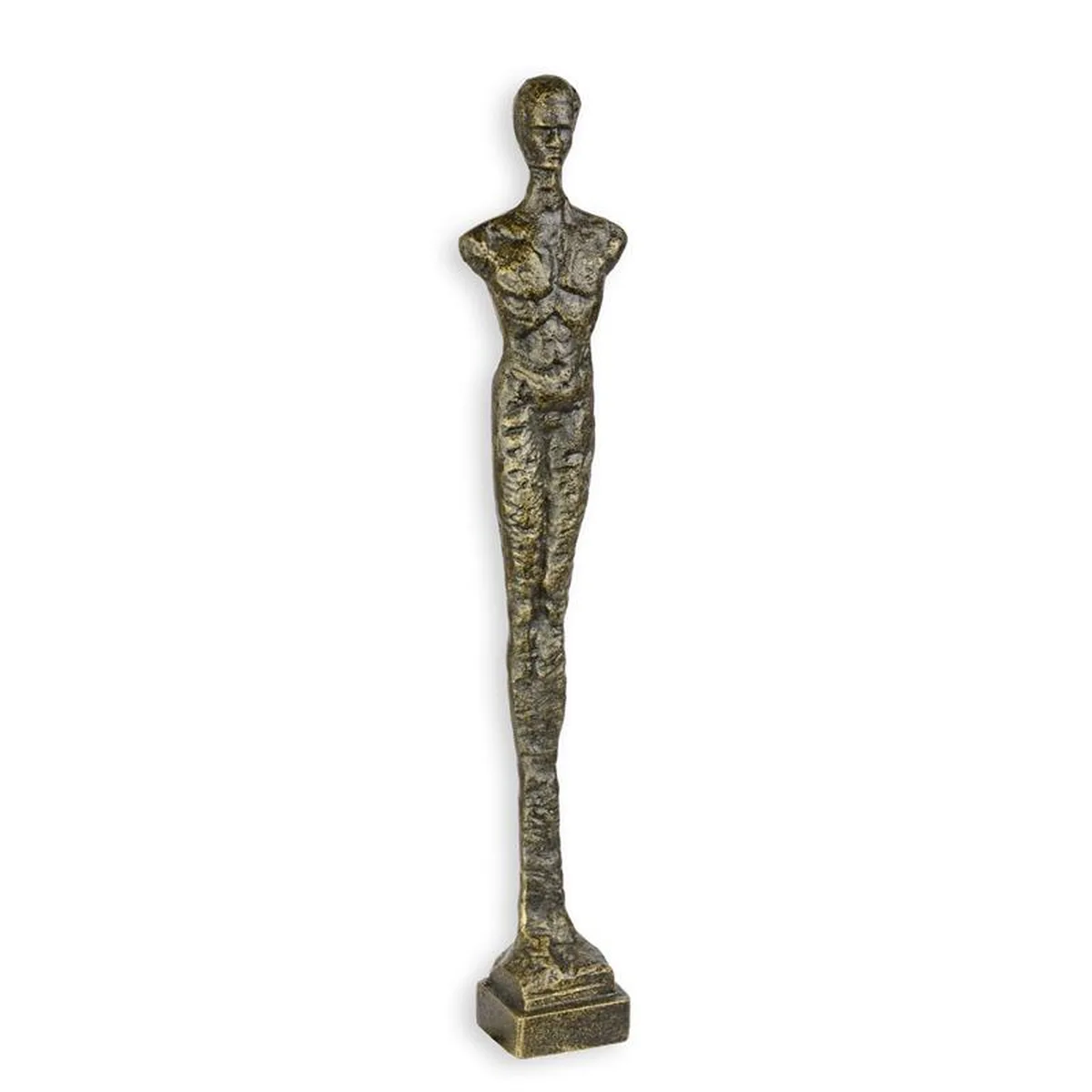 A CAST IRON MODERNIST SCULPTURE OF A STANDING MAN
