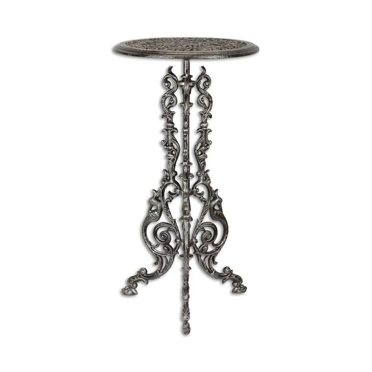A CAST IRON PLANT TABLE - SILVER (PACKED AND READY TO SHIP)