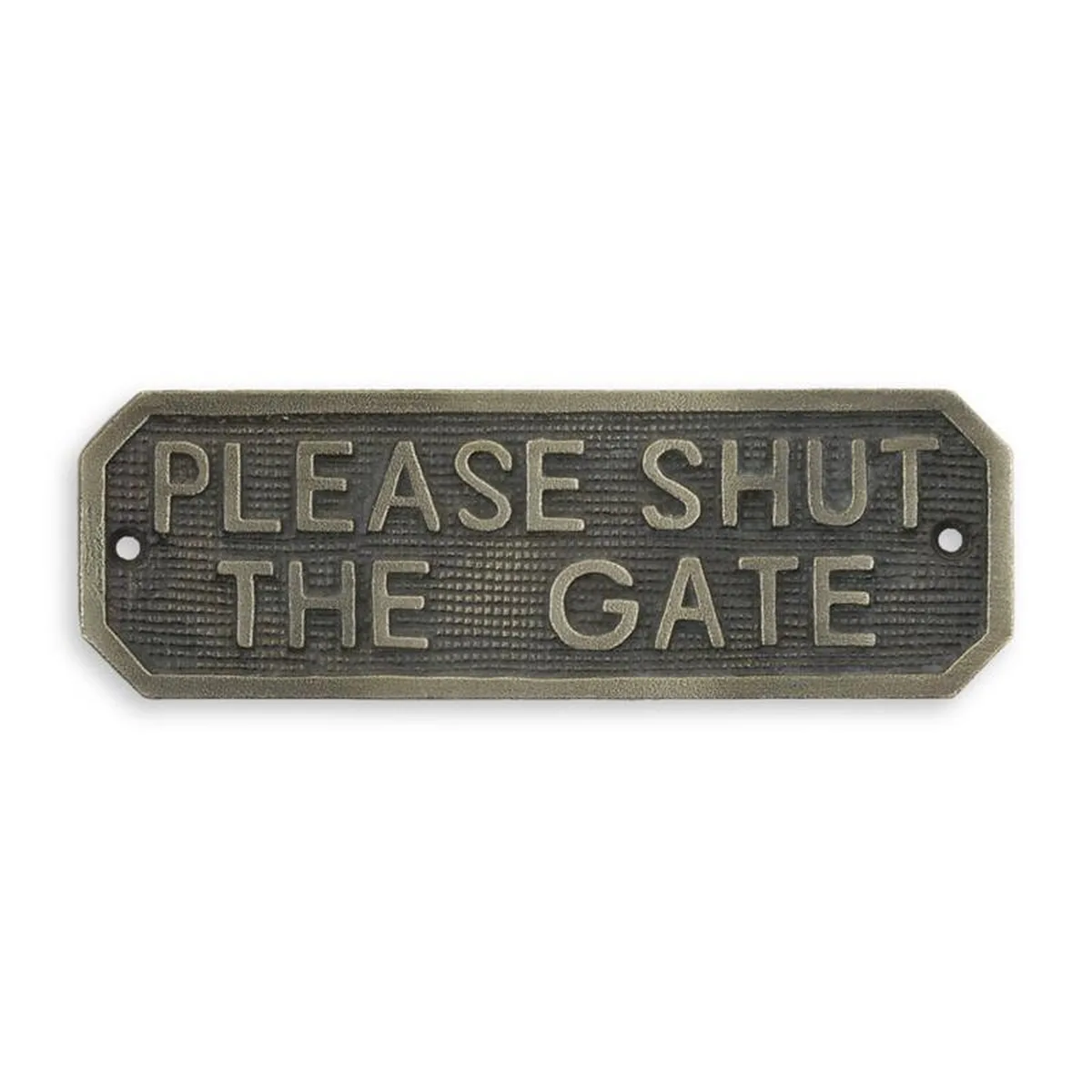A CAST IRON PLEASE SHUT THE GATE" PLAQUE"