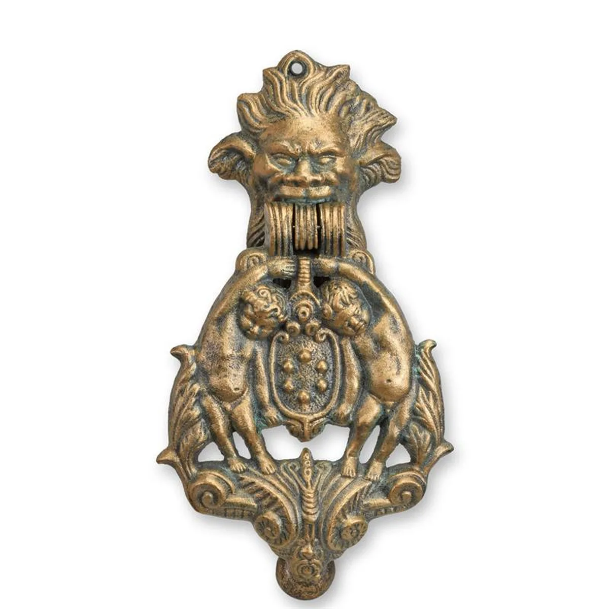 A CAST IRON SATYR AND PUTTI DOOR KNOCKER