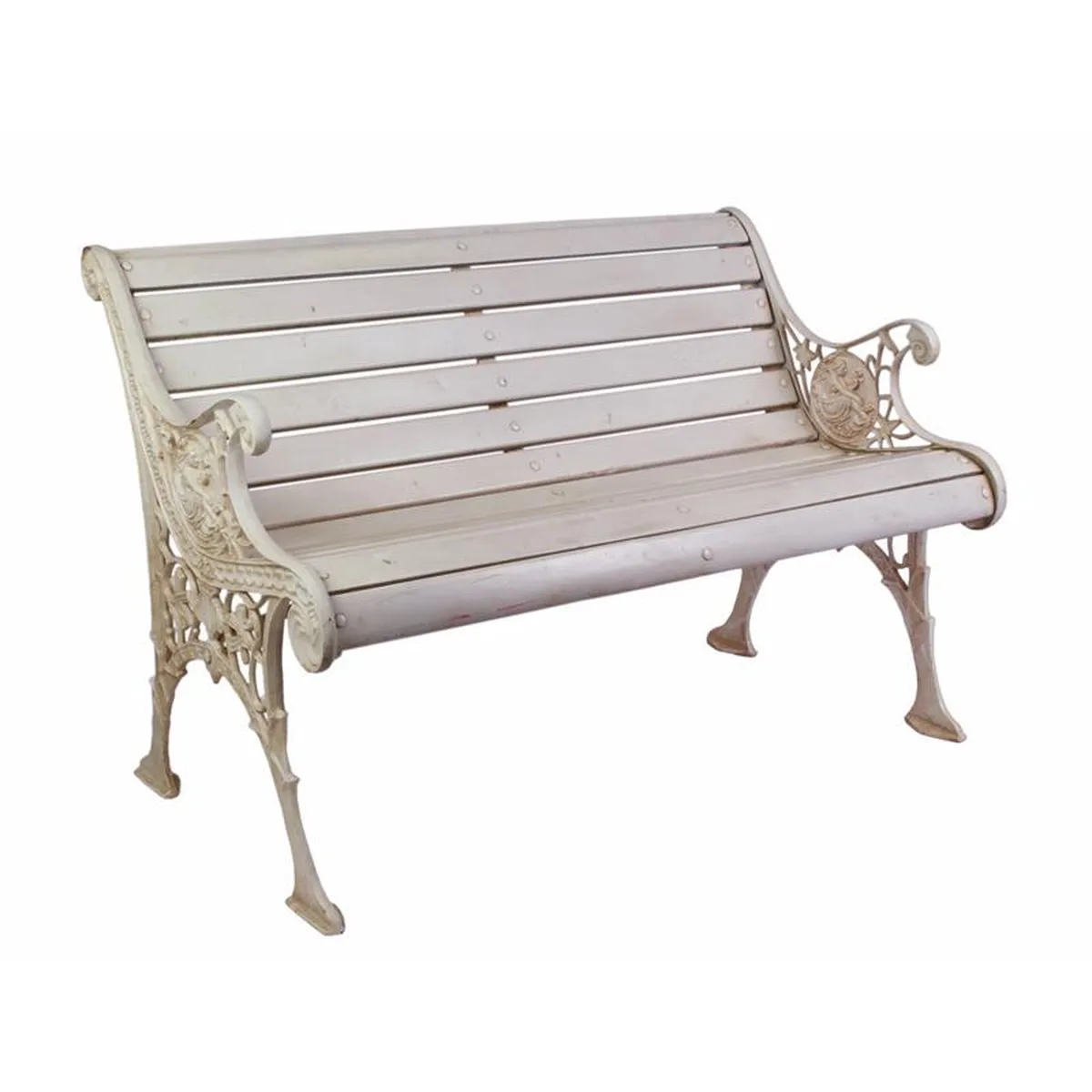 A CAST IRON TWO SEATER GARDEN BENCH (ASSEMBLED)