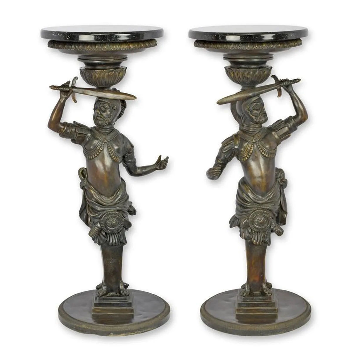 A PAIR OF BRONZE GUÉRIDON WITH MARBLE TOP