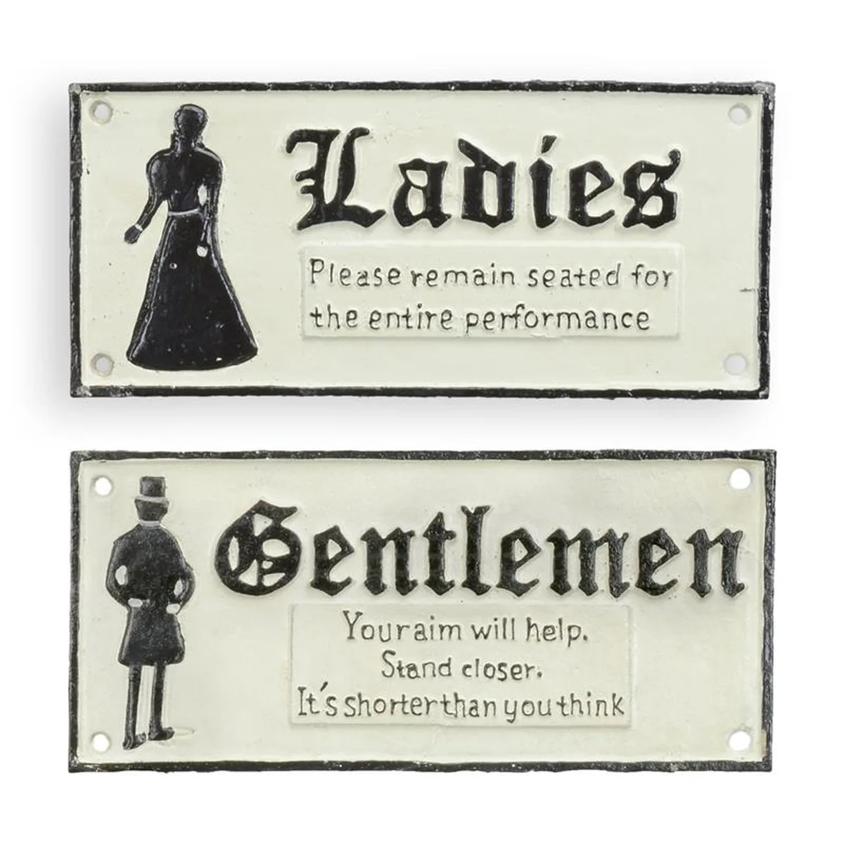 A PAIR OF CAST IRON GENTLEMEN AND LADIES" TOILET SIGNS"