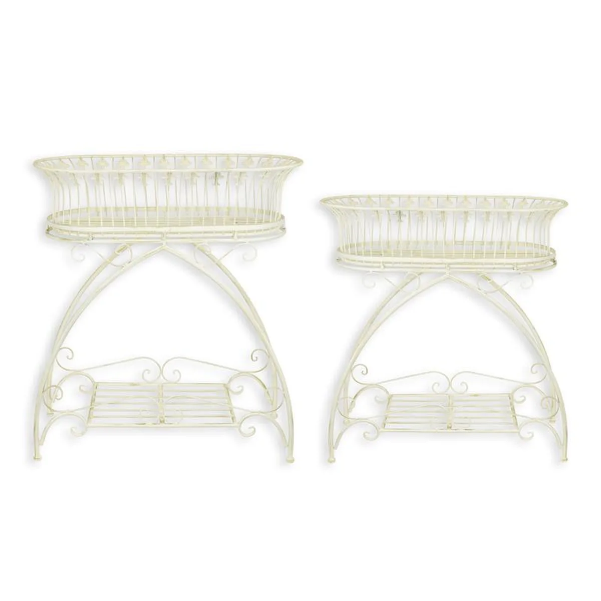 A PAIR OF IRON PLANTERS ON STAND - WHITE