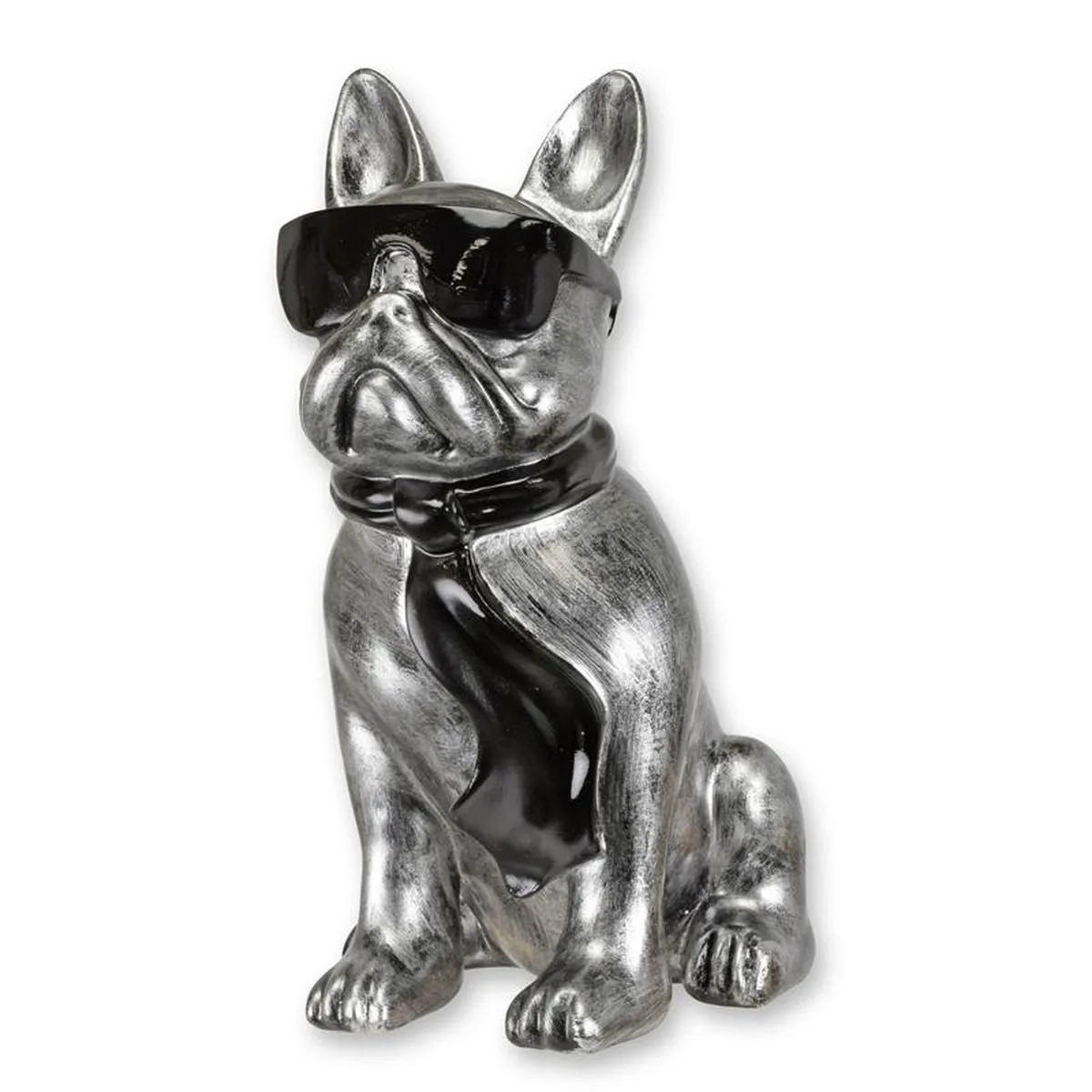 A RESIN BULLDOG WITH SUNGLASSES AND TIE - SILVER