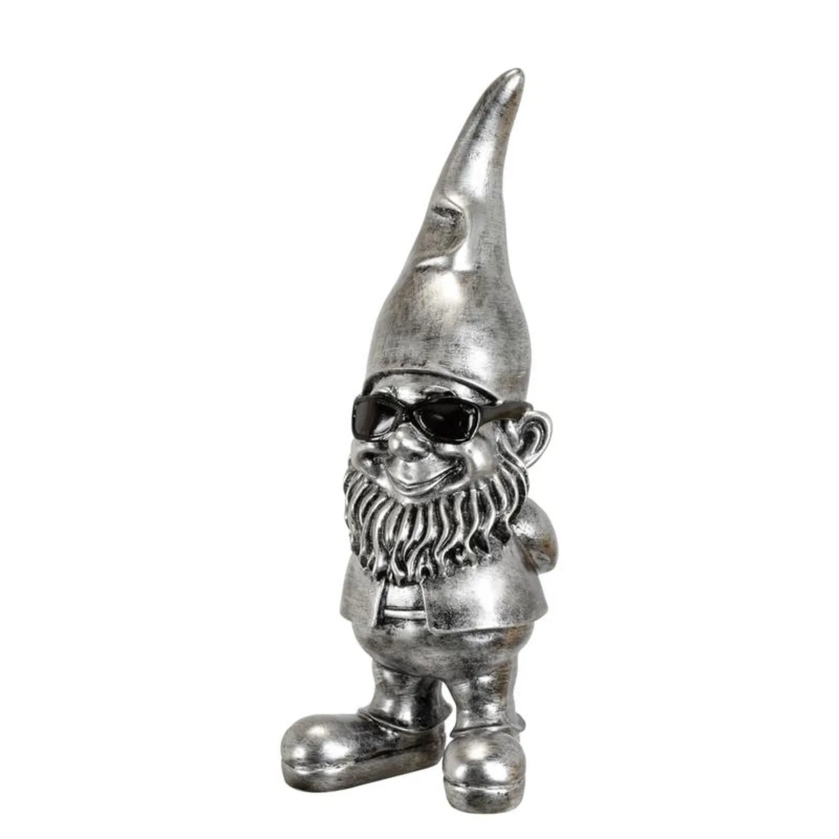A RESIN GARDEN GNOME WITH SUNGLASSES - SILVER