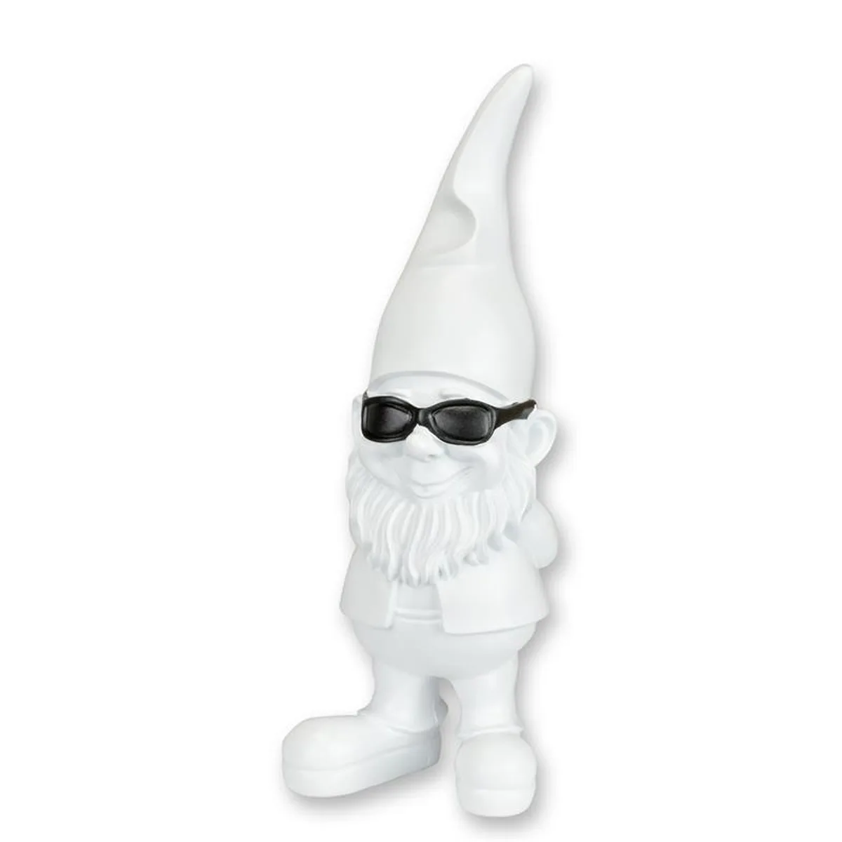 A RESIN GARDEN GNOME WITH SUNGLASSES - WHITE