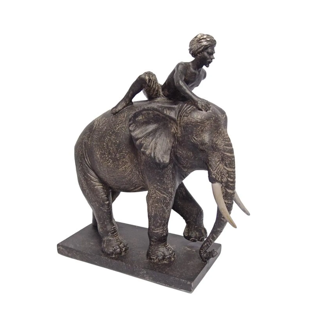 A RESIN GROUP OF AN ELEPHANT WITH RIDER