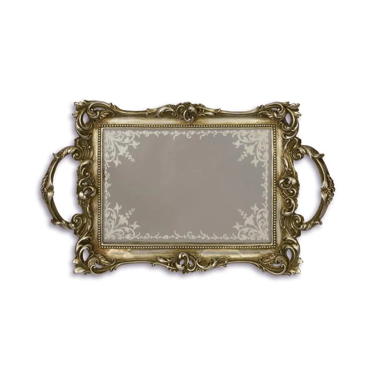 A RESIN MIRROR TRAY, ANTIQUE SILVER