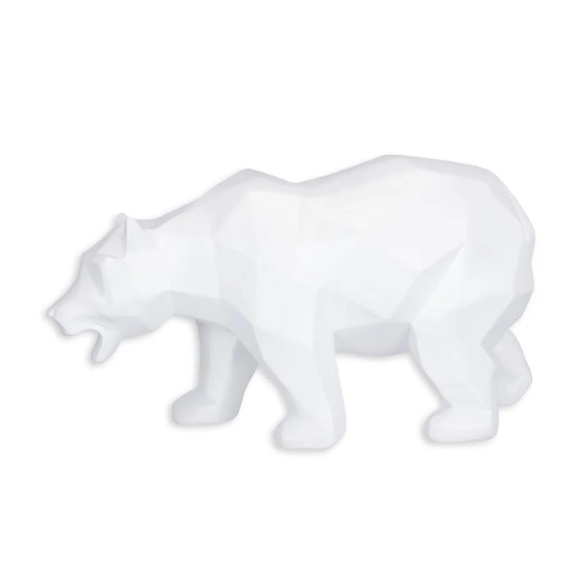 A RESIN POLYGONAL FIGURINE OF A BEAR, WHITE