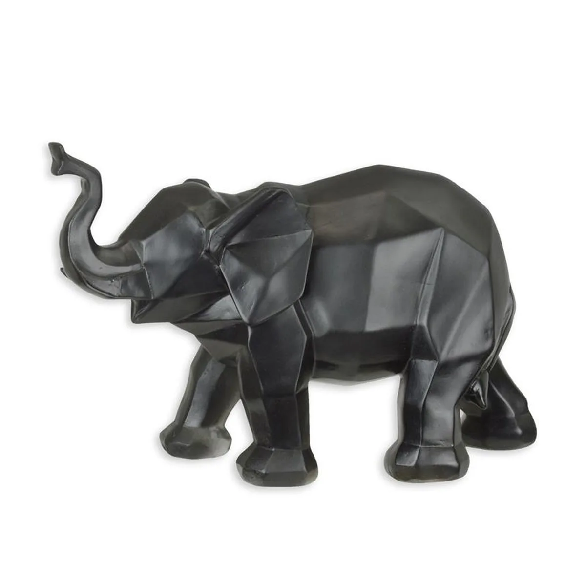 A RESIN POLYGONAL FIGURINE OF AN ELEPHANT, BLACK