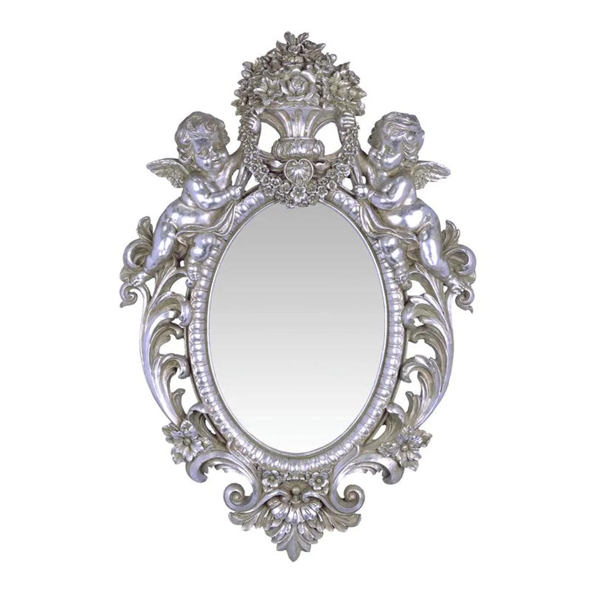 A RESIN WALL MIRROR FLANKED BY TWO PUTTI