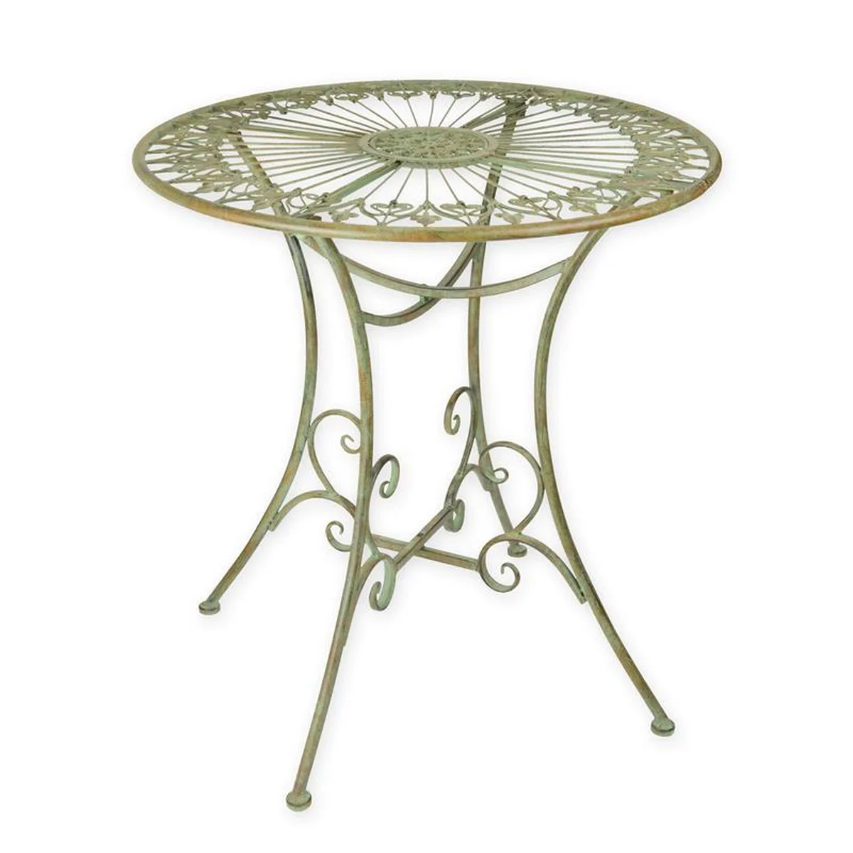 A ROUND IRON GARDEN TABLE