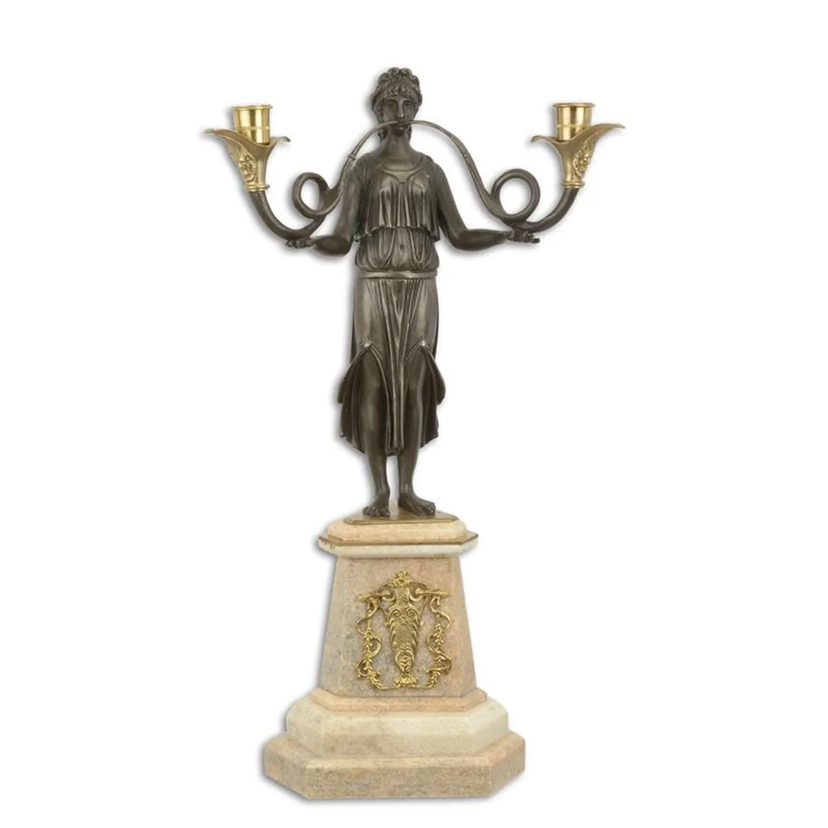 A TWO LIGHT BRONZE CANDELABRUM