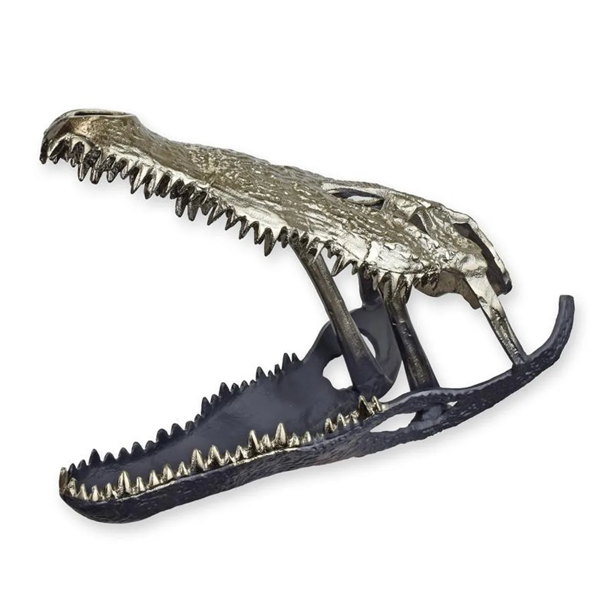 AN ALUMINUM CROCODILE SKULL