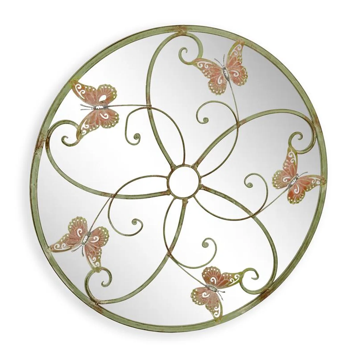 AN IRON WALL MIRROR MOUNTED WITH BUTTERFLIES